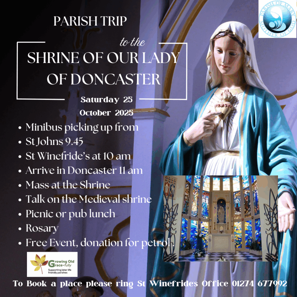 On Saturday 25th October, there is a day trip to the to the Shrine of Our Lady of Doncaster from Mary Mother of God Parish, Bradford, but all are welcome to join.