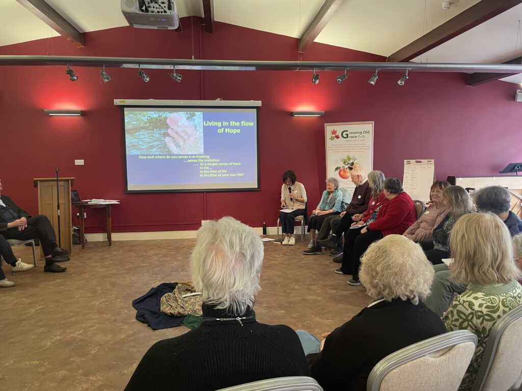 Paula introduced the theme of the morning by briefly reviewing the themes of the ‘Doorways of Hope’ series of reflections that have taken place on Zoom throughout this year of Pilgrimage: First of all, seeing Glimpses of Hope, then Living in the Flow of Hope and then Holding Hope throughout life. She explained that the invitation for people was for a deeper sense of themselves as pilgrims of hope in their daily lives at this stage of life.