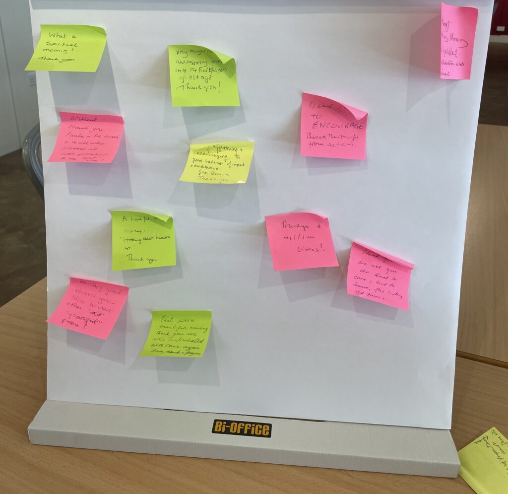 The group were asked to notice their hopes and desires for the morning and to spend some time speaking with God about this. The stilling ended with the group listening to, ‘Be still for the presence of the Lord’ and a time of silence.