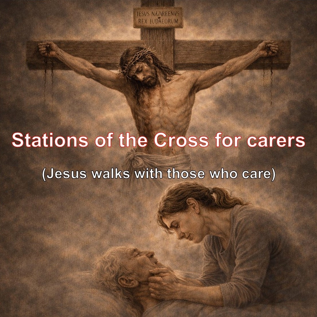These special Stations of the Cross have been written by Fr Eamonn Hegarty and Michelle Anderson specifically with carers in mind. Fr Eamonn is Parish Priest of St. Mary of the Angels, Batley and St. Patrick’s, Birstall and Michelle is Co-ordinator of the Growing Old Grace-fully Carers Project. Through the Stations of the Cross, we discover that Jesus walks this road with us. These Stations invite carers to see their own lives reflected in Christ’s journey – not as something to be explained away, spiritualised too quickly, or endured in silence, but as a place where God is already present and at work.